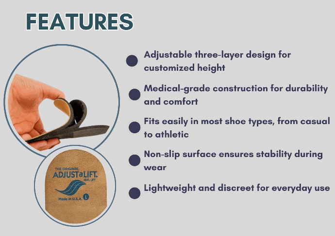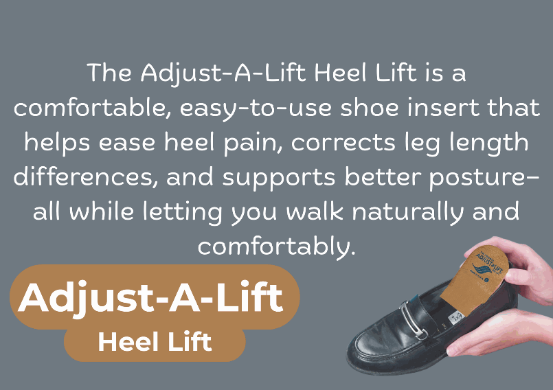 Support your step and feel balanced again with the Adjust-A-Lift Heel Lift. Order today for simple comfort and reliable support in every step.